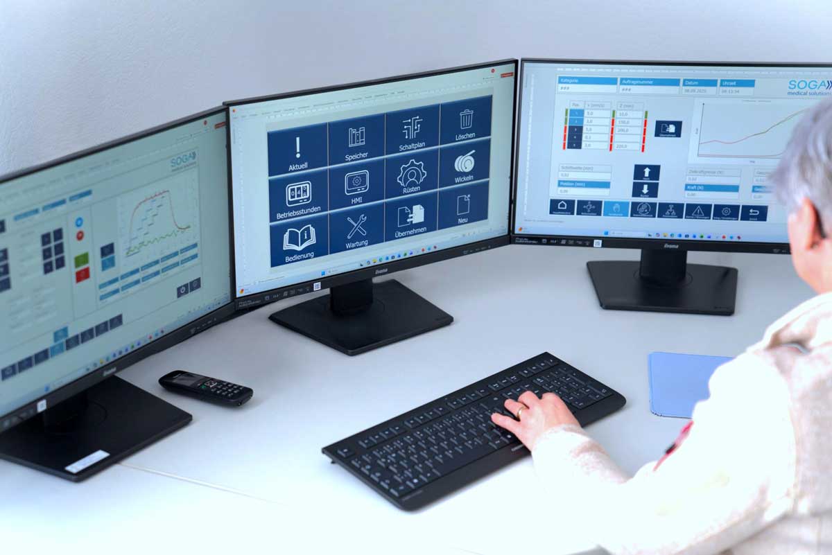 Un­se­re spe­zi­ell ent­wi­ckel­te Soft­ware ist ex­akt auf un­se­re Ma­schi­nen ab­ge­stimmt – für ma­xi­ma­le Prä­zi­si­on, Ef­fi­zi­enz und Pro­zess­si­cher­heit in An­wen­dun­gen wie Wär­me­be­hand­lung, Elek­tro­po­lie­ren, Crim­pen und ePT­FE­-Be­ar­bei­tung von Im­plan­ta­ten.