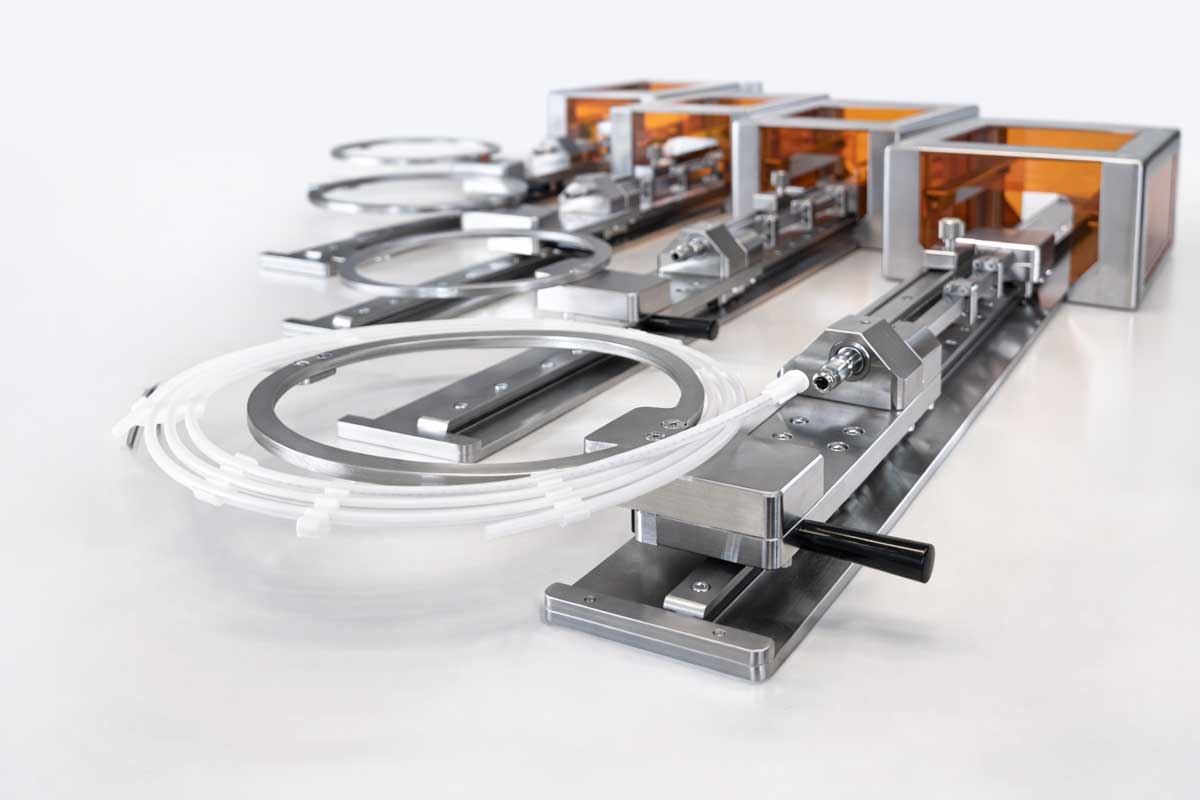 Hochpräzise Vorrichtungen bilden die Grundlage für reproduzierbare Fertigungsprozesse in der Medizintechnik. Sie sichern die exakte Positionierung, Fixierung und Bearbeitung von Halbzeugen wie Drähten, Patches oder Crimphülsen.